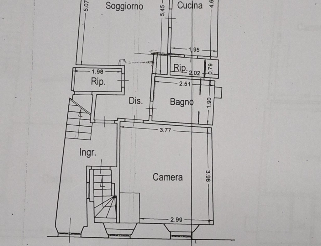 L’immobile è attualmente suddiviso in tre appartamenti indipendenti, collegati da un vano scale comune. I piani sono così distribuiti: